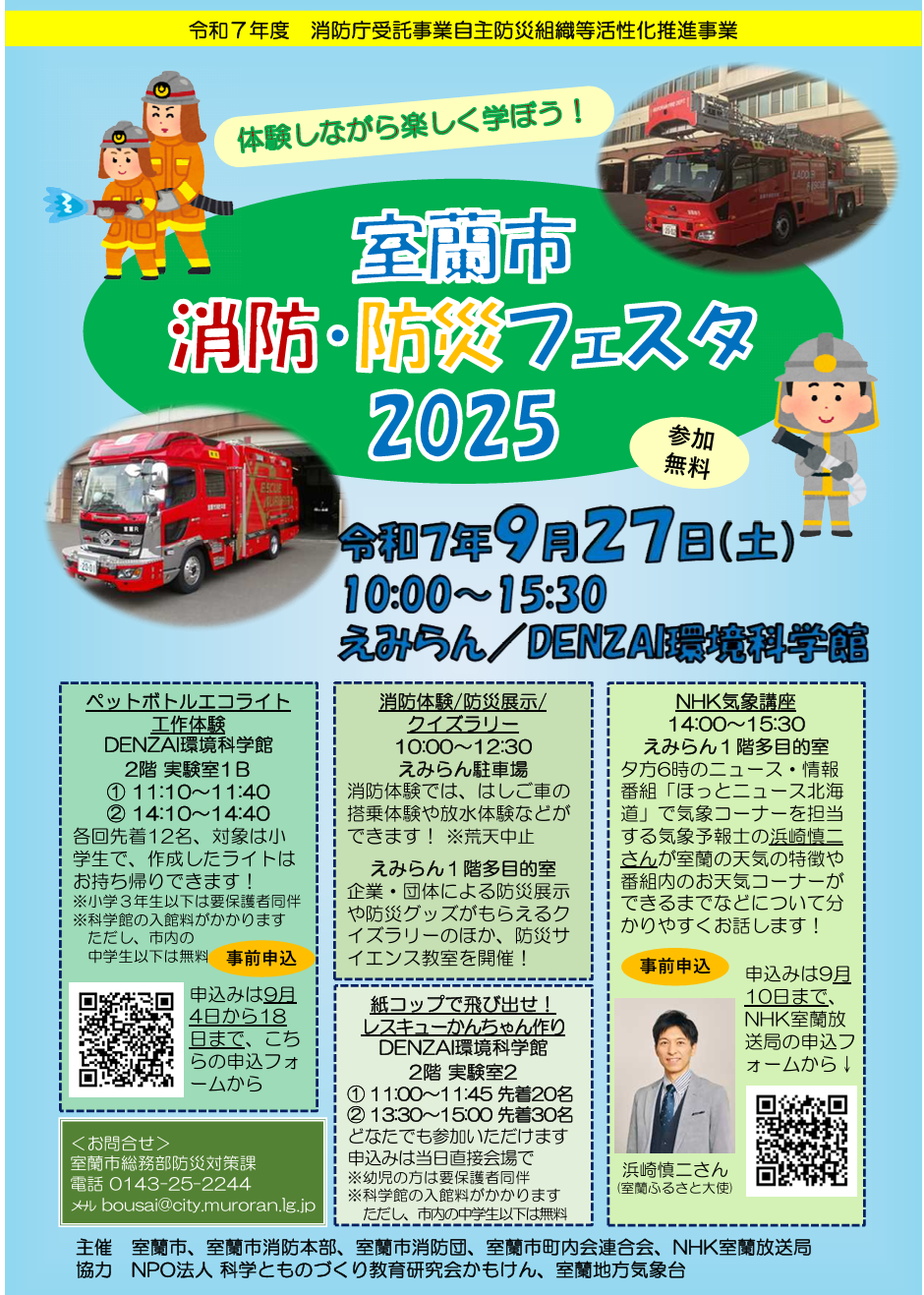 令和7年9月27日(土)に、室蘭市の えみらん/DENZAI環境科学館 で行われた 消防・防災フェスタに参加してきました。