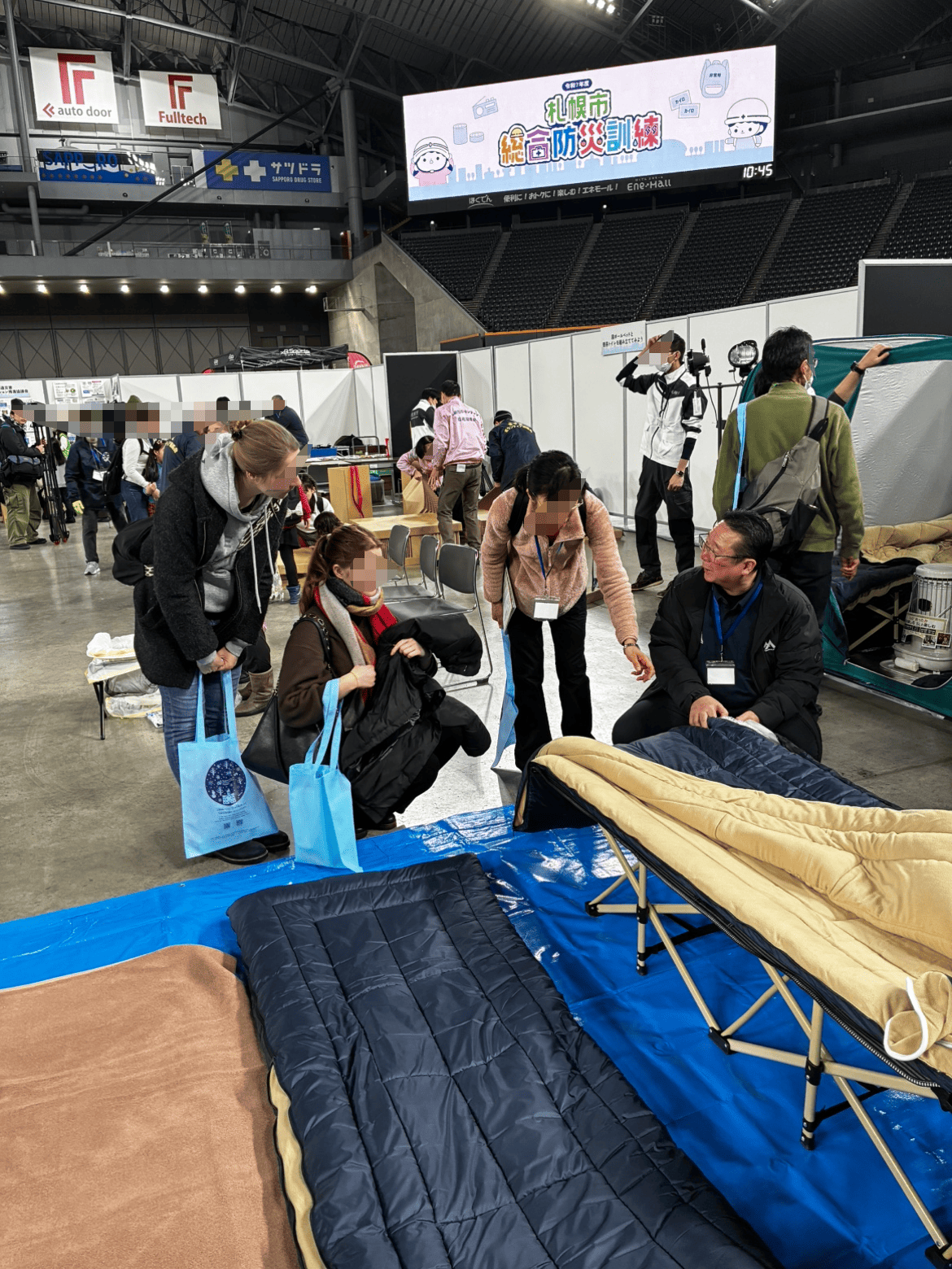 特に、寒冷地である札幌ならではの「冬の避難」をテーマにした展示は多くの方に関心をお寄せいただき、実際にベッドやテント、寝具などを体験しながら、熱心にご質問をいただく場面も多く見られました。