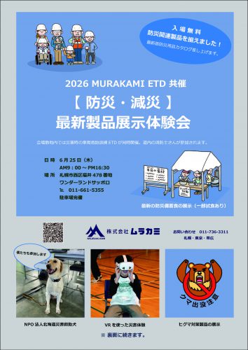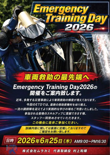 この度、株式会社ムラカミでは、最新の防災・減災ソリューションをご体感いただける**「防災・減災 最新製品展示体験会」、および車両救助訓練「Emergency Training Day (ETD) 2026」**を同時開催いたします 。
